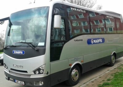 ISUZU TURQUOISE – the ideal midi-bus for transporting groups up to 30 people. Suitable especially for all types of transfers, trips, business and corporate trips, sightseeing tours, conference transfers, transportation of sports clubs, choirs or school or university activities. A Ski Box use is possible.